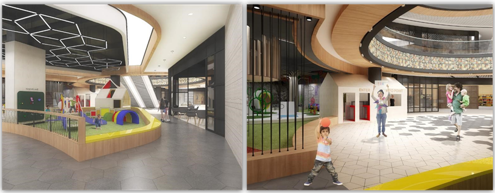 В самом торгово-развлекательном центре появятся комната матери и ребенка, детские площадки, супермаркет, книжные бутики, магазины игрушек и многое другое. Также самым юным гостям обещают презентовать несколько уникальных инсталляций для активного образа жизни и всестороннего развития.