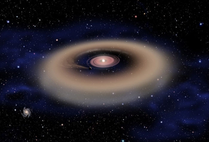 Система напоминает колесо в колесе: внешний диск окружает ее всю, а внутренний вращается вокруг ее главной звезды
