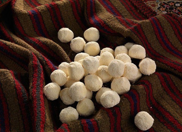 Традиционный для Казахстана курт подкрашивают, используя только натуральные ингредиенты: сок свеклы и моркови, ядра орехов, мелко порубленную зелень. В итоге продукт получается желтым и розовым, зеленым и красным.
