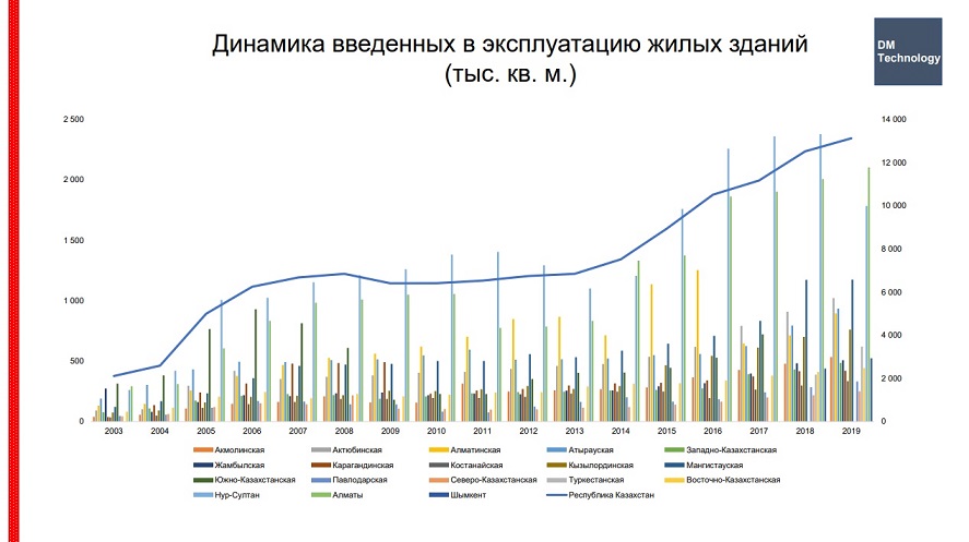 «Вместе с командой пришли к любопытному выводу: официальная статистика не бьется — разница между показателями по жилью «Правительства для граждан» и комитета по статистике может достигать от 10% до 20%. Очевидно одно: на рынке присутствует высокий и постоянно растущий спрос, который государству необходимо обеспечивать всеми возможными способами, иначе последствия могут быть хуже», — отмечает эксперт.