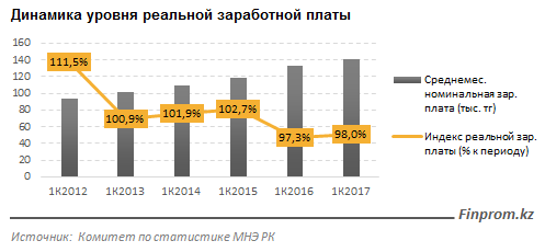 За январь-март 2017 года цены на основные потребительские товары и услуги в РК по отношению к периоду годом ранее увеличились на 7,8%. При этом рост номинального значения среднемесячной зарплаты за этот же период составил всего 6%.
