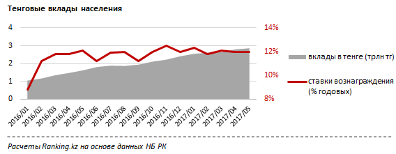 В начале 2016 года банки предлагали вознаграждения по тенговым вкладам 8,8% годовых.