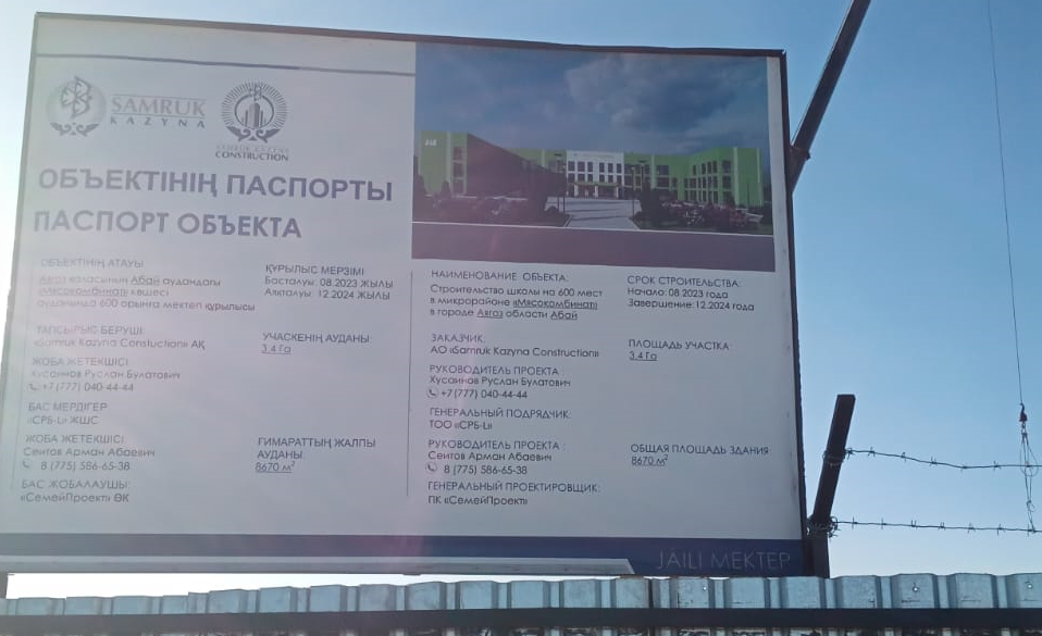 Здание учебного заведения, которое возводят в Аягозе Абайской области по заказу АО «Samruk-Kazyna Construction» в рамках национального проекта «Комфортная школа» строят с нарушениями, заявляют жители города, передает корреспондент Total.kz.