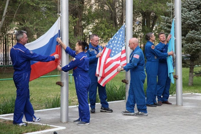 Над Байконуром подняли флаги стран-участников очередного полета Эксклюзив