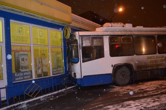 Троллейбус с пассажирами въехал в торговый бутик в СКО. Фото