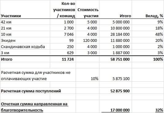 По расчетам Жапабаева получается, что на бегунах было заработано более 52,8 миллиона тенге, а на благотворительность ушло всего 17 миллионов тенге.