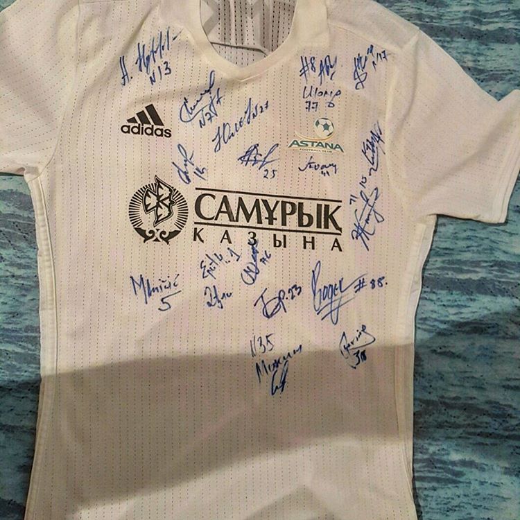 «Именная, чемпионская, абсолютно новая, с автографами всех футболистов «Астаны», майка, подаренная мне лично лучшим футболистом в Казахстане Дмитрием Шомко – это один из самых дорогих экспонатов моей коллекции оригинальных маек. Без преувеличения она дорога мне. И она может стать вашей. Просто помогите парню – Тимуру Шакирову победить рак. Сделать еще один, маленький шаг к чуду. Каждая копейка в такой ситуации на вес золота. Предлагаю небольшой аукцион, стартуем с 35 тысяч тенге, и майка будет Ваша», – написал в Instagram Артем Буланов.