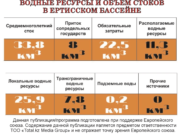Рис. 2. Водные ресурсы и объем стоков в Ертисском бассейне