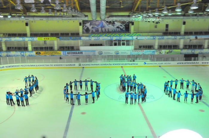 Флешмоб прошел в областном центре во дворце спорта «Бурабай» на ледовой арене, передает корреспондент Total.kz со ссылкой на управление внутренней политики Акмолинской области.