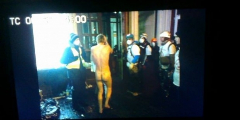 Ребят раздели, били, обливали водой, а потом пустили голыми бежать через баррикады к Евромайдану. Сейчас их одели и лечат в помещении института украинского языка.