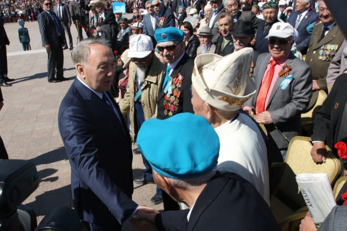 «Уважаемые ветераны, поздравляю вас от чистого сердца с праздником Победы! Мы - народ, который умеет уважать ветеранов и заботится о старшем поколении», - сказал Н. Назарбаев.