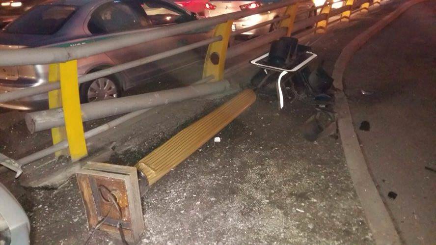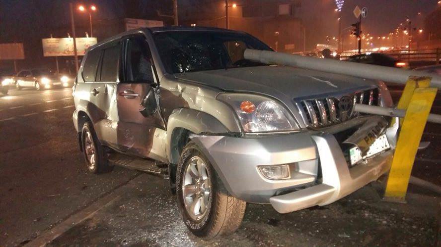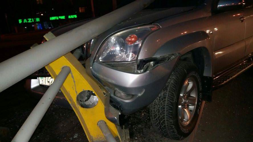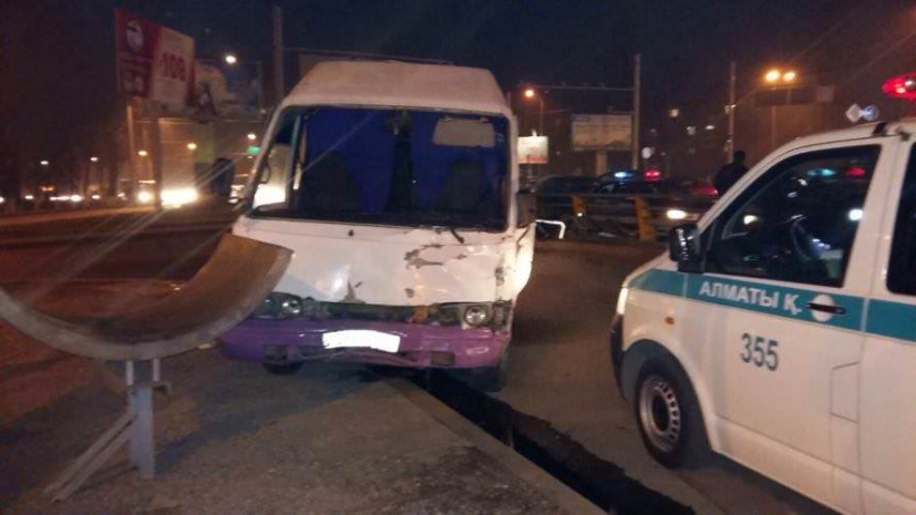 По словам водителя автобуса №9, он ехал по Жандосова в западном направлении. Автомобиль Toyota Prado ехал по Жандосова в восточном направлении, водитель намеревался повернуть на Саина. Водитель автобуса не успел притормозить, и автобус врезался в Toyota Prado. От удара машина снесла светофор, врезалась в железный забор на мосту. Автобус откинуло в бордюры.