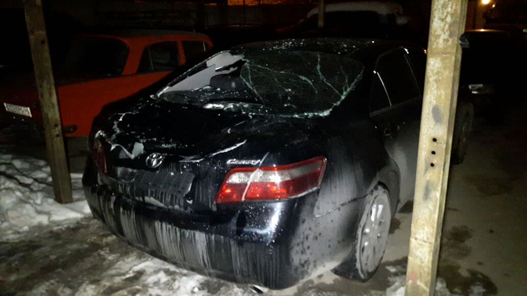 Неприятный инцидент произошел недалеко от общежития, по адресу: Саина, 8. В результате падения глыб льда с кровли повреждены три машины – «Ниссан», «Деу» и «Тойота». К счастью, никто из людей не пострадал.