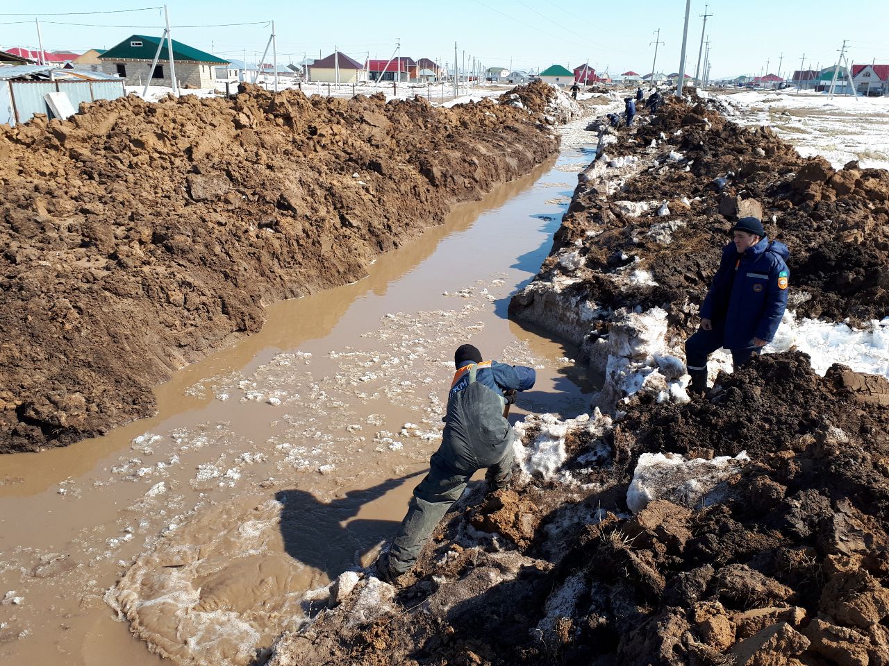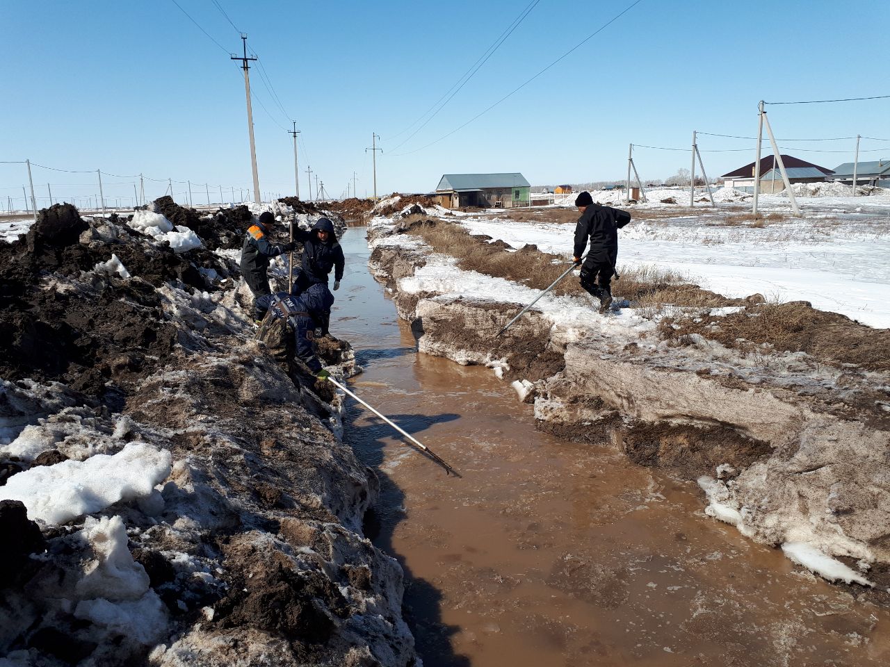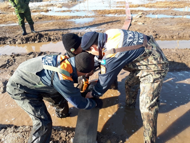 В тот же день группа РОСО занималась переправой населения в районе с. Караколь на вскрытом участке автодороги (вскрыт для слива талых вод) до села Новый Колутон.