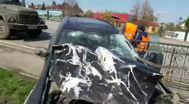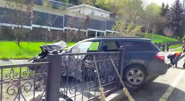 Известно, что автомашина марки Subaru двигалась в северном направлении. Водитель утверждает, что его «подрезал» автомобиль марки Mazda, после чего он не справился с управлением и снес 7-8 секций железного забора, расположенного вдоль автодороги. Обломок забора «прошил» автомашину, включая подушку безопасности.