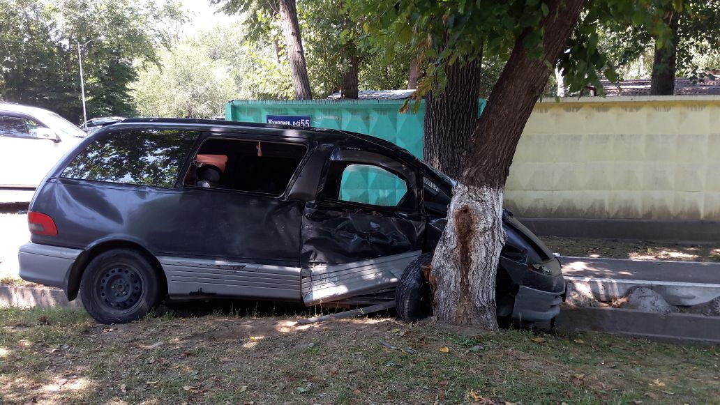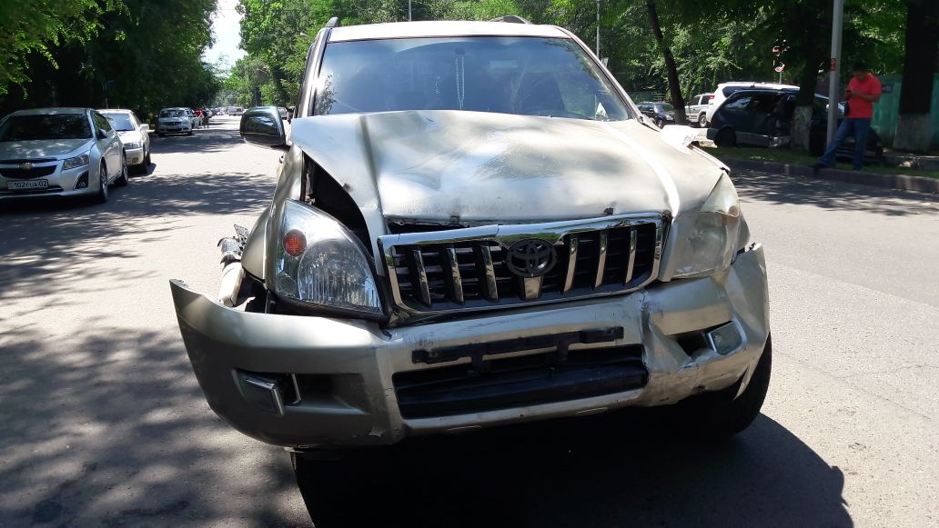 В этот момент по Жумалиева ехала «Тойота Эстима». «Тойота Прадо» бьет «Эстиму», и ее от удара откидывает в арык и в дерево.