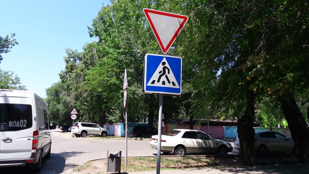 Со слов очевидцев и водителя «Тойота Прадо», он двигался по Айтеке би в западном направлении, не заметил знак «Уступи дорогу», выскочил на пересечение с улицей Жумалиева.