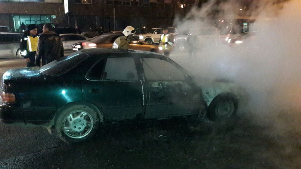 Автомобиль сгорел дотла в Алматы. ФОТО