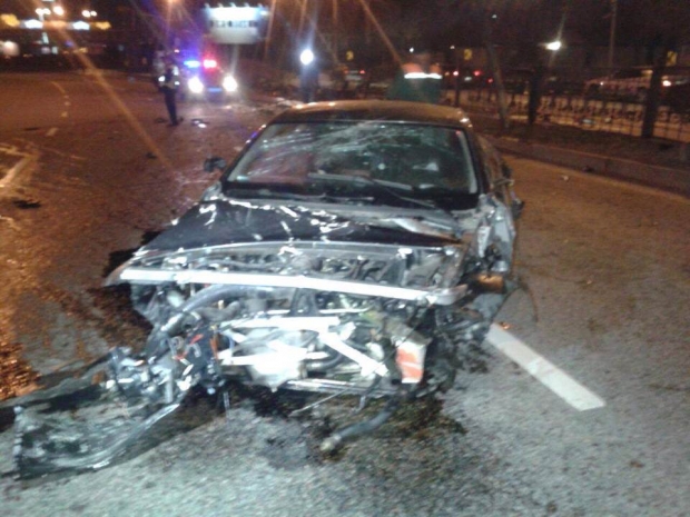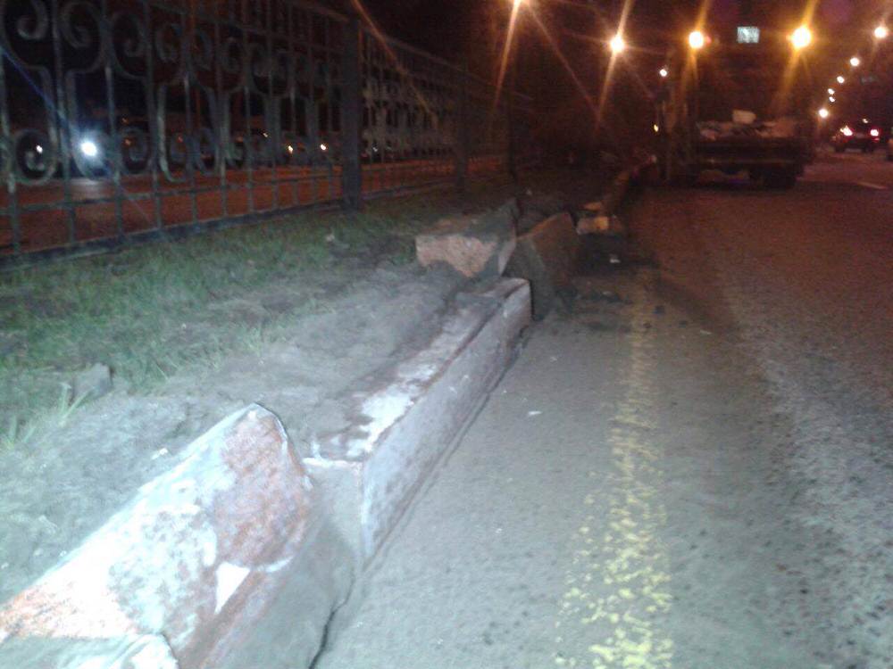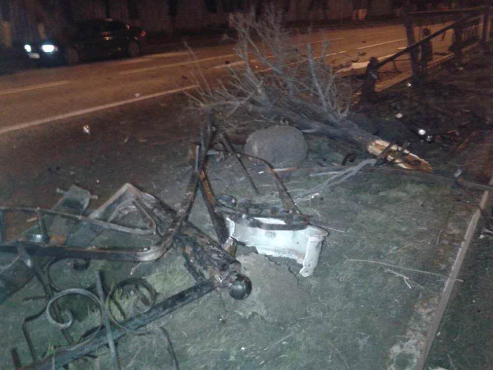Автомобиль Aston Martin двигался в западном направлении по проспекту Аль-Фараби, на повороте на Баганашил водитель не справился с управлением, машину занесло. Aston Martin снес семь секций разделительного ограждения, два дерева, бордюры, перевернулся в воздухе и встал на колеса.
