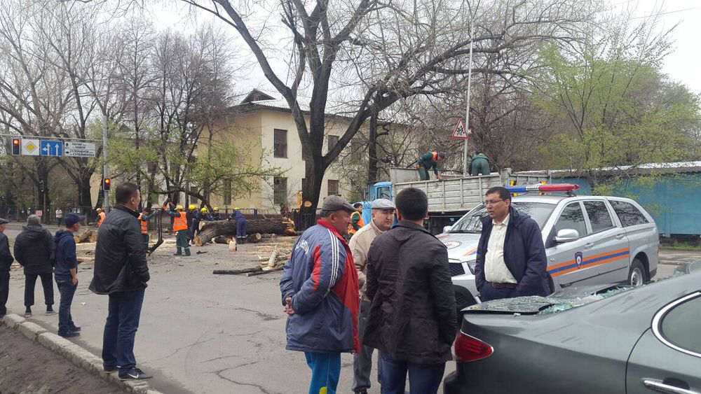 Дерево в Алматы упало на проезжающую автомашину (ФОТО)