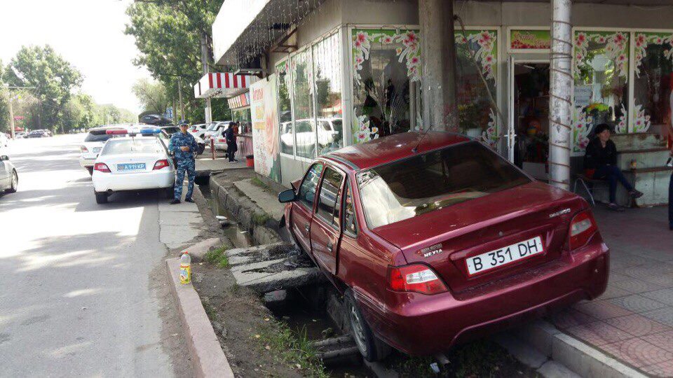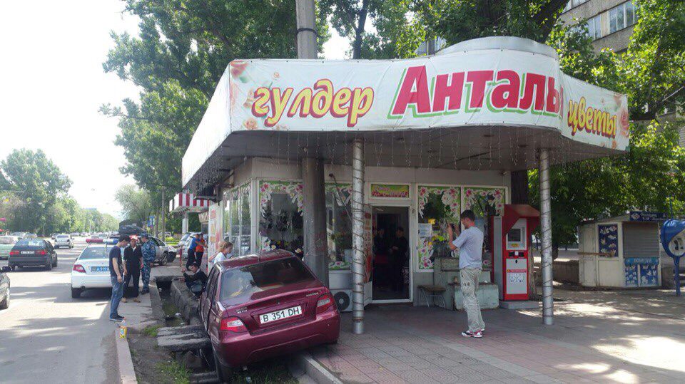 Daewoo Nexia врезалась в цветочный магазин в центре Алматы