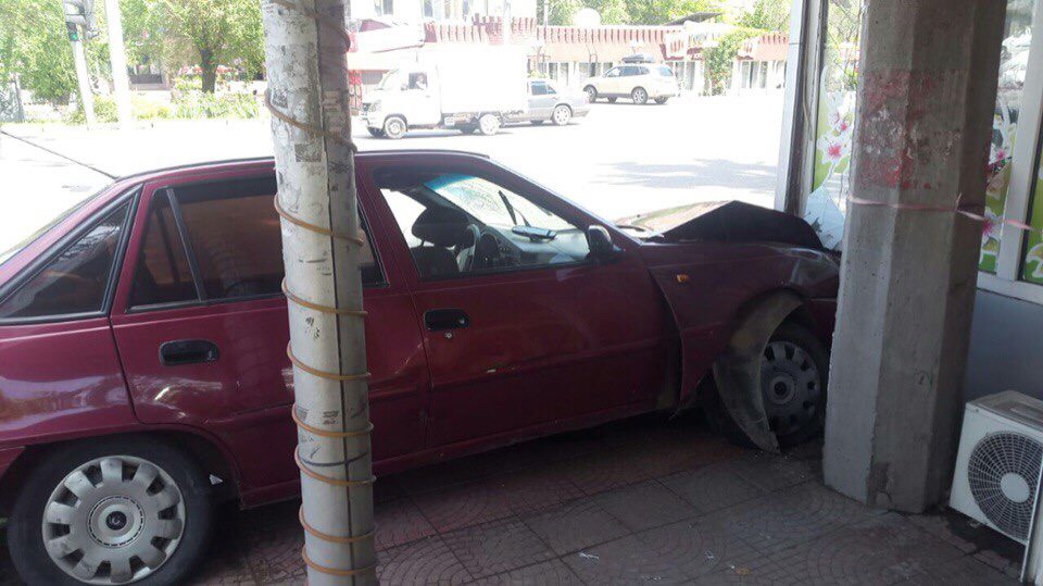 Автошина Daewoo Nexia двигалась в восточном направлении по Толе би, а Mercedes направлялся в западном по этой же улице, и в момент поворота налево, на улицу Ауэзова, со слов очевидцев, Nexia проехала на мигающий светофор, в это время её задевает Mercedes. От удара Daewoo отбрасывает в рядом стоящий цветочный магазин.