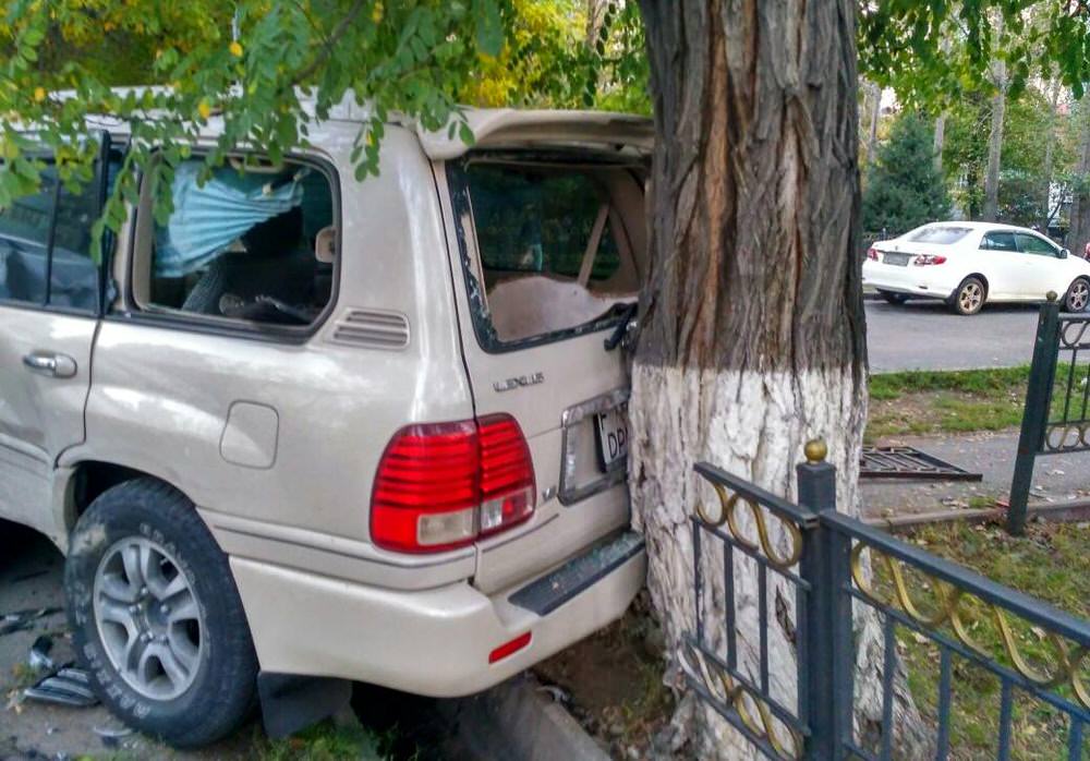 Со слов очевидцев, первый двигался в северном направлении по улице Гагарина. В это время в западном направлении по улице Мынбаева, проигнорировав знак «Уступи дорогу», выехал второй участник ДТП – Lexus 470. В результате столкновения машин Lexus 470 отлетел в дерево и снес одну секцию ограждения. За рулем внедорожника была девушка.