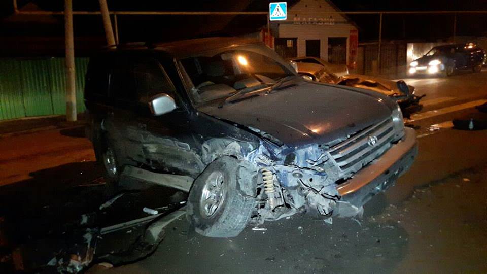 По словам очевидцев, внедорожник «Тойота Прадо» двигался на север по улице Ауэзова. Водитель японского джипа решил повернуть налево, однако в этот момент в южном направлении двигался автомобиль «БМВ». На большой скорости «БМВ» врезается в «Прадо». В результате столкновения пострадали четыре человека. Пассажир немецкой легковушки в крайне тяжелом состоянии госпитализирован в городскую больницу №7.