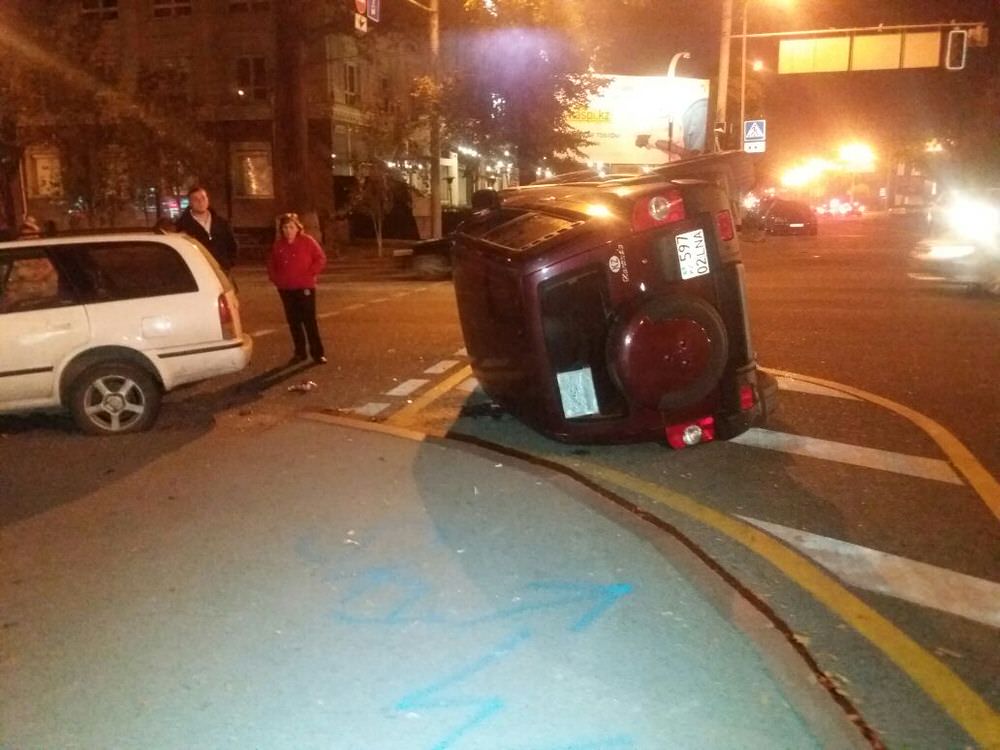 Проигнорировав правила дорожного движения, Korando не уступил дорогу Nissan. В результате столкновения машин одна машина перевернулась, а вторую откинуло на столб.