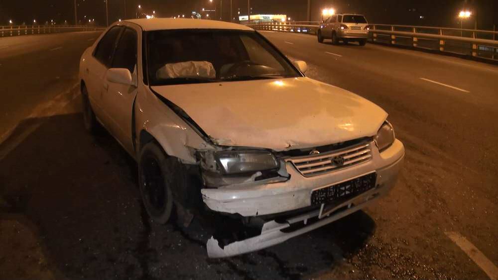 Со слов водителя машины Toyota Camry, он ехал в северном направлении по улице Райымбека в крайнем левом ряду. Перед ним на мосту выехал автомобиль Daewoo Nexia, водитель которого решил совершить разворот и, не заметив Toyota Camry, совершил ДТП. В результате происшествия пострадали два человека, которые были доставлены в ближайшую больницу.