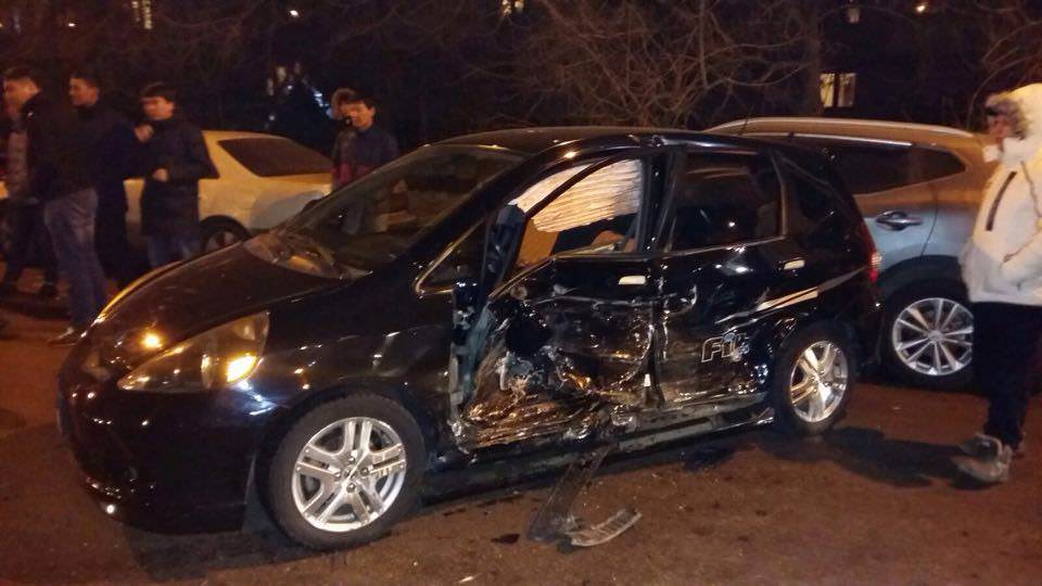 Водитель автомашины Honda ехал на север по Момышулы в крайнем правом ряду и планировал, по словам очевидцев, совершить разворот через двойную сплошную линию. Водитель Audi, ехавший также в северном направлении в левом ряду, допустил столкновение с машиной Honda и врезался в Nissan. В результате аварии пострадали три человека: двоим была оказана медицинская помощь на месте, один - доставлен в больницу.