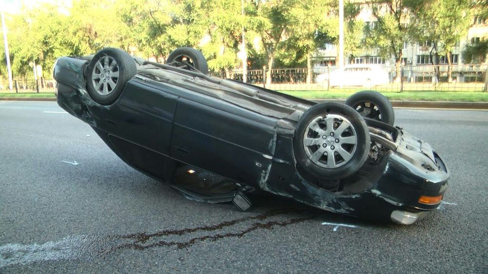 Из-за собаки Toyota Camry перевернулась на Аль-Фараби