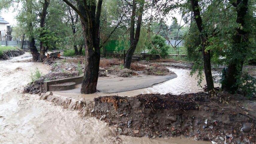 Уточняется, что строительный мусор забил сток арыка, из-за чего потоки дождевой и речной воды разливаются по тротуарам и мелким улицам.