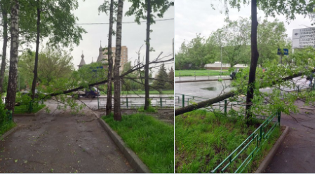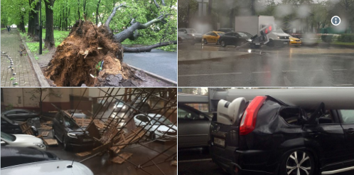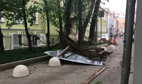 Уже сейчас порывы ветра в столице достигают 16 метров в секунду, он может и усилиться. Прохождение холодного фронта сопровождается ливнем, местами с грозой, не исключено, что может где-то пройти град. Плохая погода привела к жертвам. На Зубовском бульваре около музея Москвы часть ограждения упала на припаркованный рядом автомобиль. Также из-за упавших деревьев затруднено движение аэроэкспрессов в аэропорт Внуково и увеличены интервалы движения на Филевской линии метрополитена.
