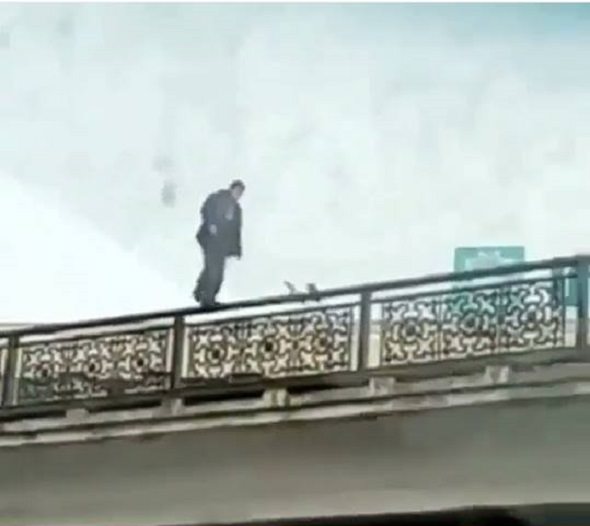 Авторы видео зафиксировали, как молодой мужчина ходит по перилам моста.