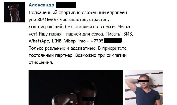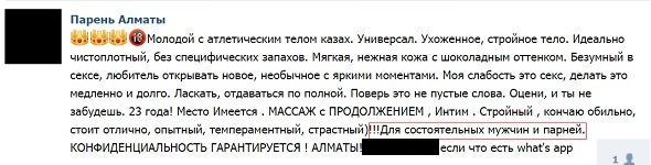 По количеству объявлений в этих группах и сообществах в «ВКонтакте» лидируют алматинские гей-проститутки.