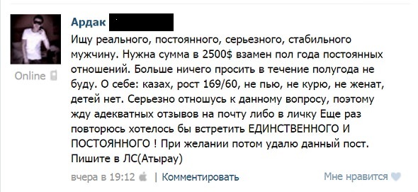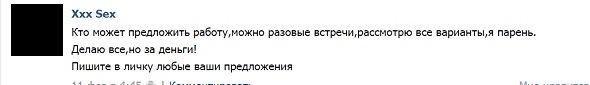 Стоит отметить, что такие группы и сообщества набирают по 20 тысяч участников мужского пола. Ежедневно группы пополняются новыми объявлениями.