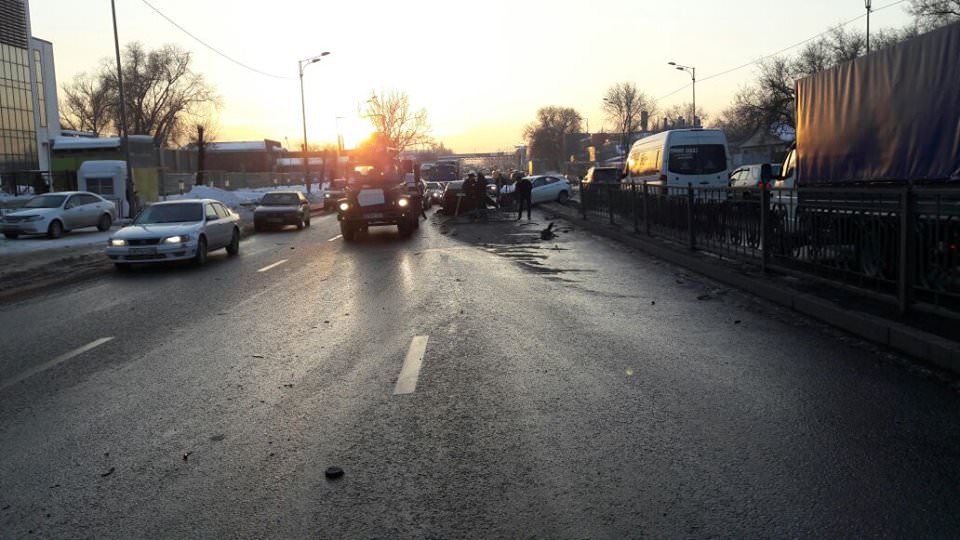 Дорожная авария произошла по проспекту Рыскулова, между улицами Розыбакиева и Тлендиева, передает корреспондент Total.kz.
