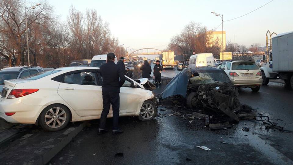 Со слов очевидцев, автомашина BMW двигалась на большой скорости по Рыскулова в западном направлении. При этом ее водитель то и дело грубо нарушал правила дорожного движения, а в какой-то момент не справился с управлением и врезался в металлическое ограждение.