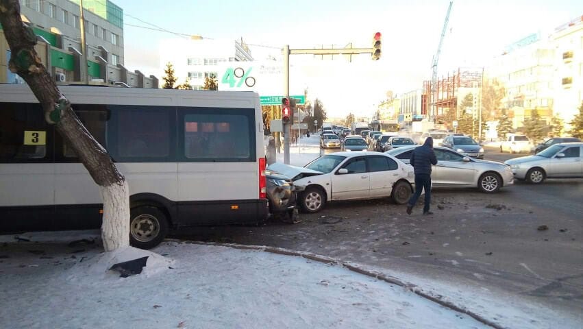 «Маршрутка» с пассажирами едва не снесла дерево в центре Павлодара