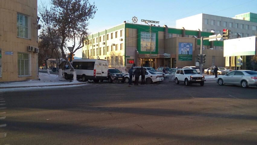 В результате дорожно-транспортного происшествия столкнулись три автомашины: пассажирский микроавтобус Iveco, а также Nissan и Rav-4, под управлением девушки. Авария случилась на перекрестке улиц Сатпаева и Естая.