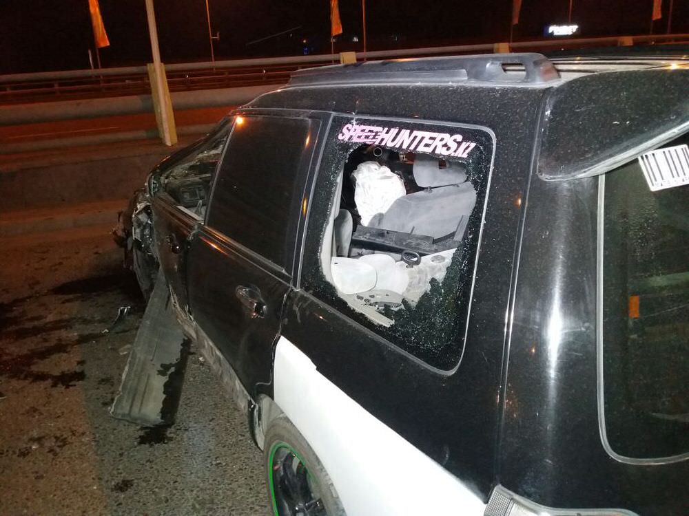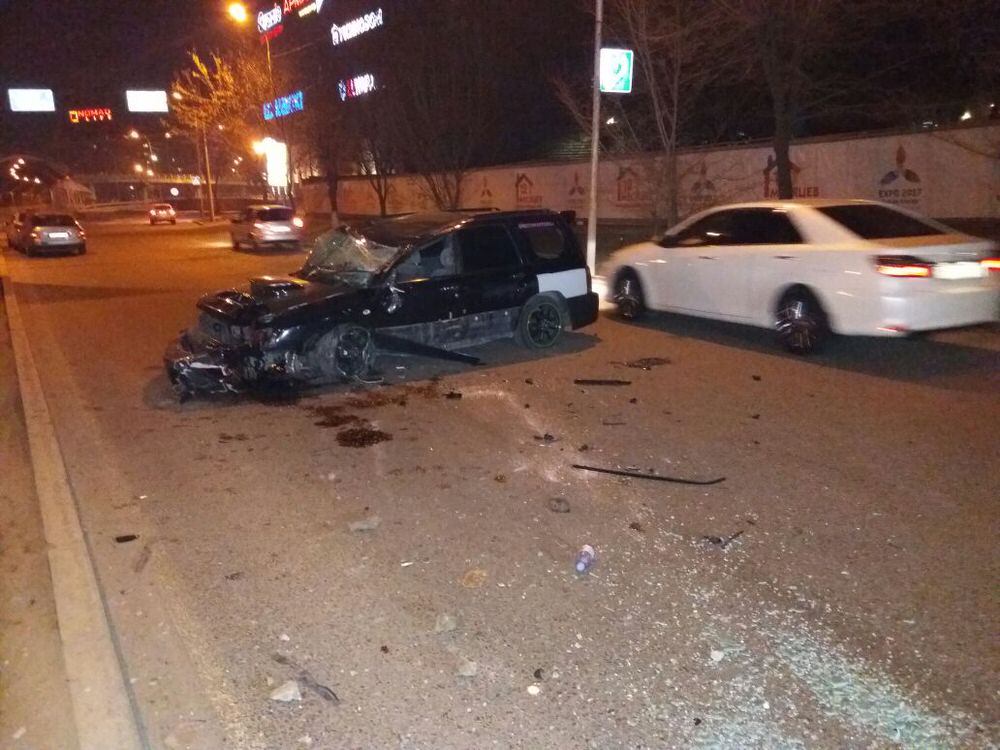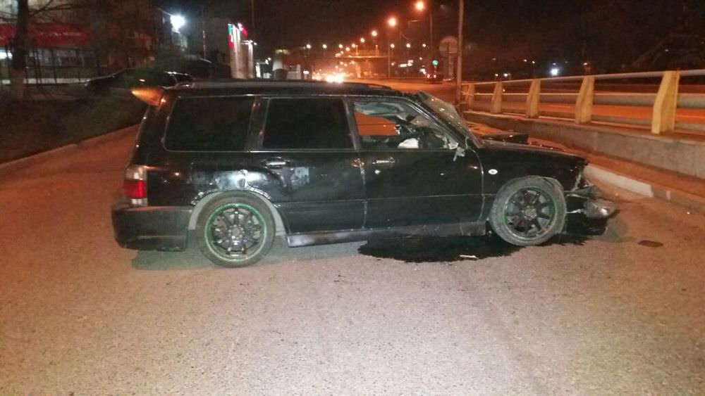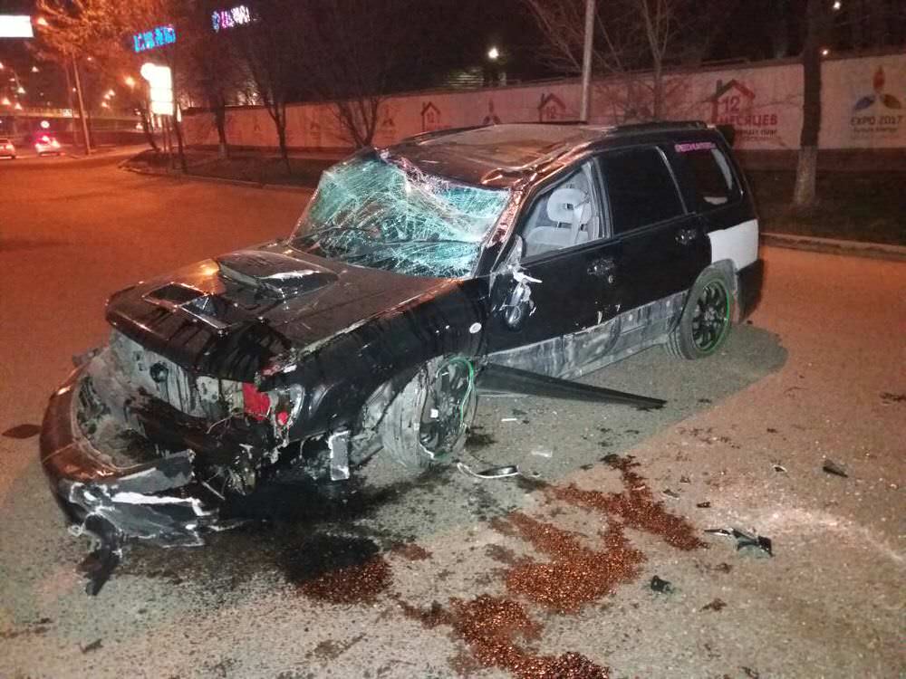 Со слов очевидцев, автомобиль Субару Форестер на большой скорости двигался в восточном направлении по улице Райымбека, не справился с управлением, врезался в отбойник, и машина перевернулась несколько раз и потом опять встала на колеса.