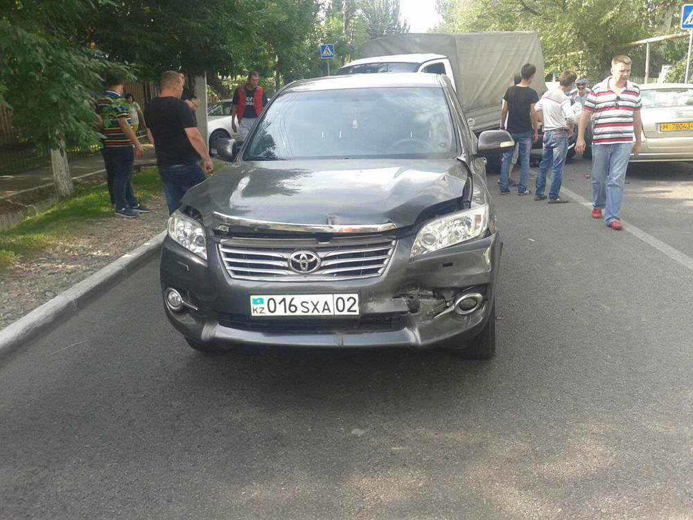 Сзади ехала автомашина Land Cruiser, водитель которой задумался и не увидел торможение впереди едущих машин. В результате чего дорогая иномарка на полном ходу въезжает в Газель, которая задевает едущую впереди Rav4. Японская машина по инерции влетает в Mazda. В то же время джип от удара с Газелью вылетает на встречную полосу, где задевает Toyota Avensis.