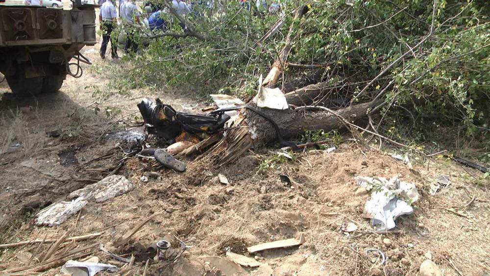 В результате столкновения легковушку протащило через полосу встречного движения до дерева, растущего на обочине дороги.
