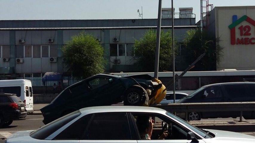 Автомашина BMW, двигаясь в западном направлении, выскочила на полосу встречного движения на проспекте Райымбека, передает Total.kz.