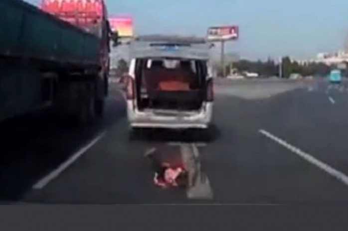 На трассе ребенок выпал из багажника авто (ВИДЕО)