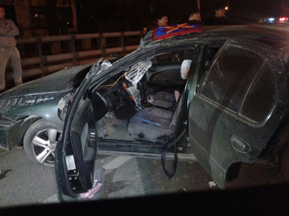 Автомобиль BMW двигался по улице Раимбека в западном направлении, параллельно с ним в этом же направлении ехал Nissan Maxima. На перекрестке с улицей Ахрименко BMW подрезала неизвестная машина. Резким движением немецкая иномарка вильнула вправо и зацепила Nissan. От удара он налетел на металический отбойник и перевернулся. В результате переворота пострадал его водитель Nissan.