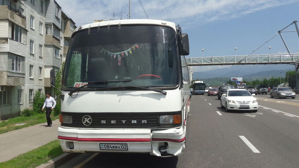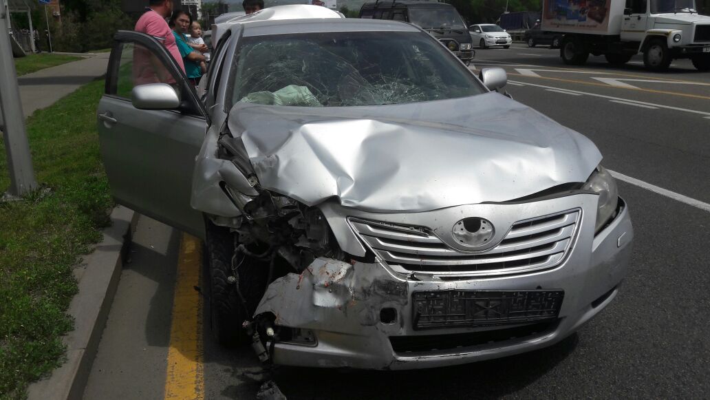 Со слов очевидцев, автомашина Хонда двигалась в западном направлении по улице Аль-Фараби в левом крайнем ряду. За рулем была девушка. Машина налетела на открытый люк, заднее колесо тем самым было пробито. Девушка-водитель и ее пассажирка вышли, чтобы поменять колесо. Они стояли возле автомашины и в этот момент Тойота Камри, ехавшая в левом крайнем ряду, увидев, что Хонда стоит на дороге, решила перестроиться. В этот момент в среднем ряду, тоже в западном направлении по Аль-Фараби ехал автобус с детьми. Автобус ударил в заднюю часть автомашины Тойота Камри, после чего авто откинуло на Хонду. В результате две девушки оказались зажаты между двумя автомашинами – Тойотой и Хондой. По предварительным данным, у одной из девушек оторвало обе ноги. Обе девушки в крайне тяжелом состоянии доставлены в ближайшую больницу. В автобусе с детьми никто не пострадал.