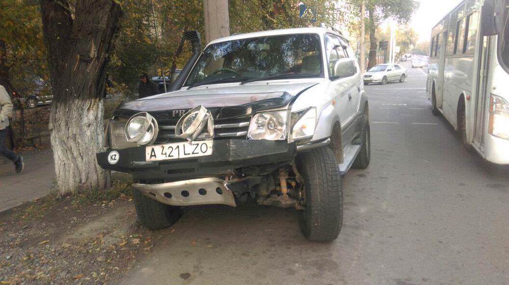 По словам водителей двух авто, оба двигались на зеленый свет светофора. Toyota Land Cruiser Prado передвигался в южном направлении по Шарипова, а по Толе би ехал Mitsubishi. В результате столкновения один из автомобилей перевернулся. К счастью, никто из людей не пострадал. Врачи скорой помощи после осмотра отпустили водителей.
