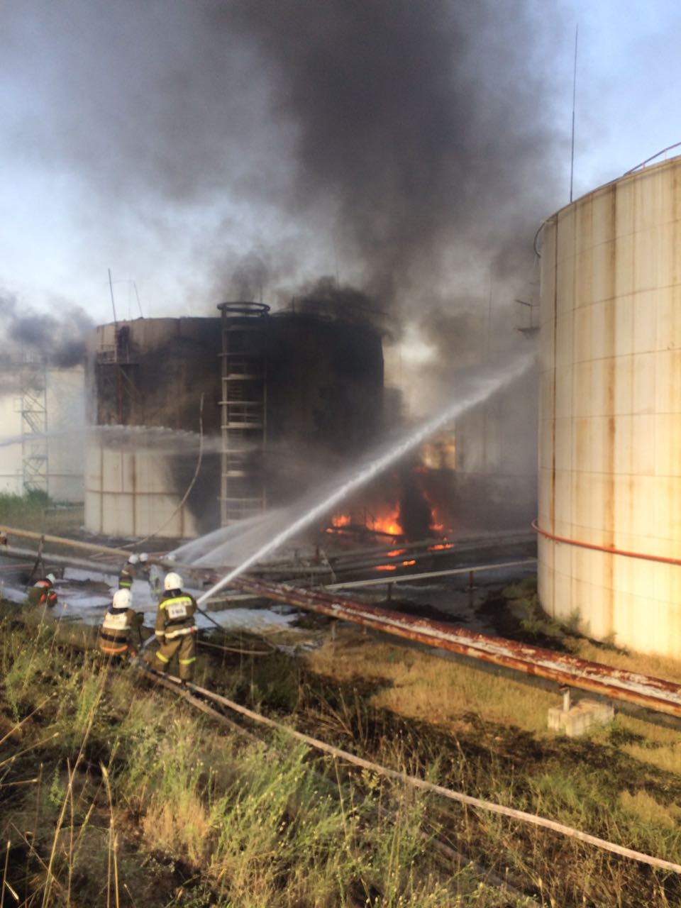 На месте создан оперативный штаб пожаротушения с организацией двух боевых участков для подачи дополнительных водяных стволов на охлаждение и защиту рядом расположенных резервуаров. Организована работа по подготовке пенной атаки.